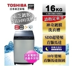 Toshiba  AW-DMG16WAG變頻直立式16KG鍍膜洗衣機