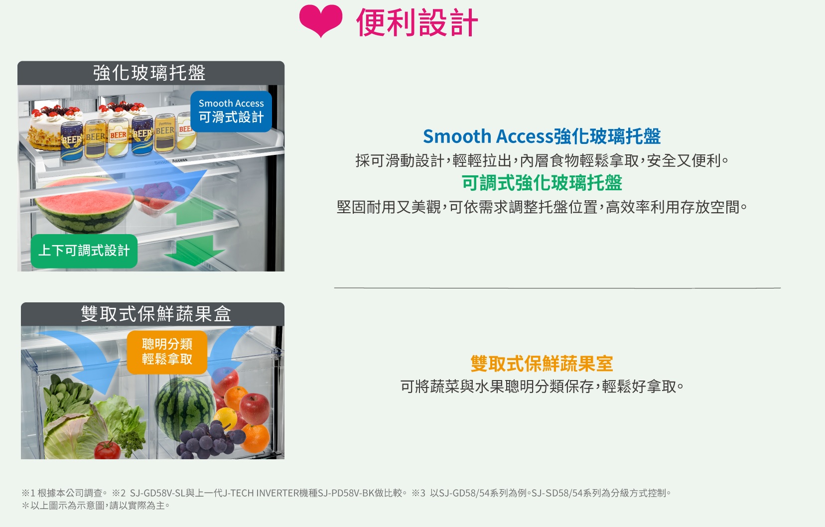 抽屜式蔬果室 O(雙取式保鮮蔬果室)