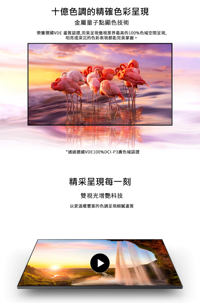 此商品客訂出貨■ 4K 量子智慧處理器 ■ 金屬量子點顯色技術 ■ 雙視光增艷科技 ■ HDR 雙規格 ■ UHD 極致控光技術 ■ 多重視窗 ■ 遊戲玩家模式 |