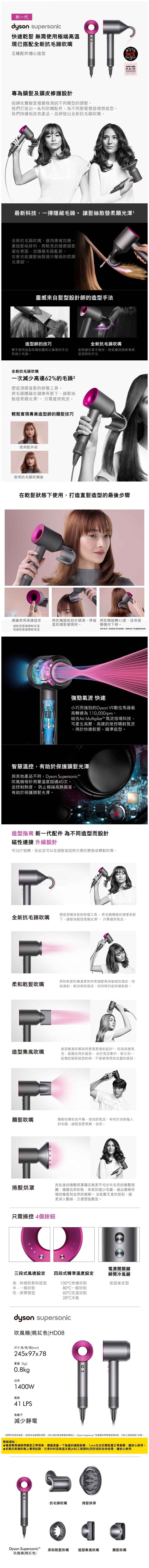 品名 (全新版) Dyson Supersonic™ 吹風機 桃紅色 HD08