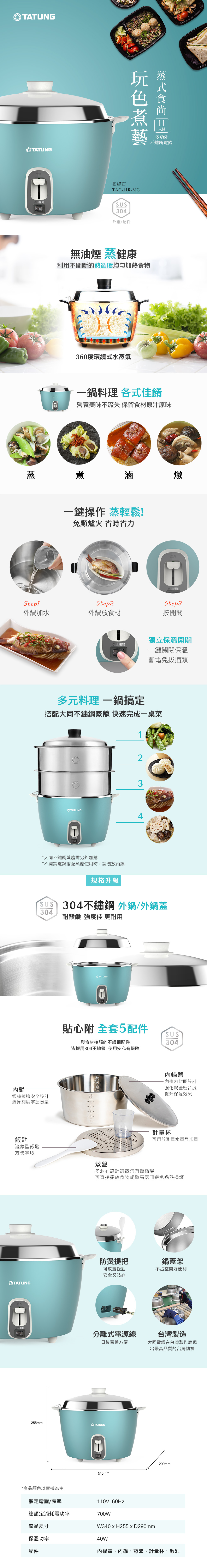 | 大同 11人份不鏽鋼電鍋 TAC-11R 顏色以廠商庫存為主 |